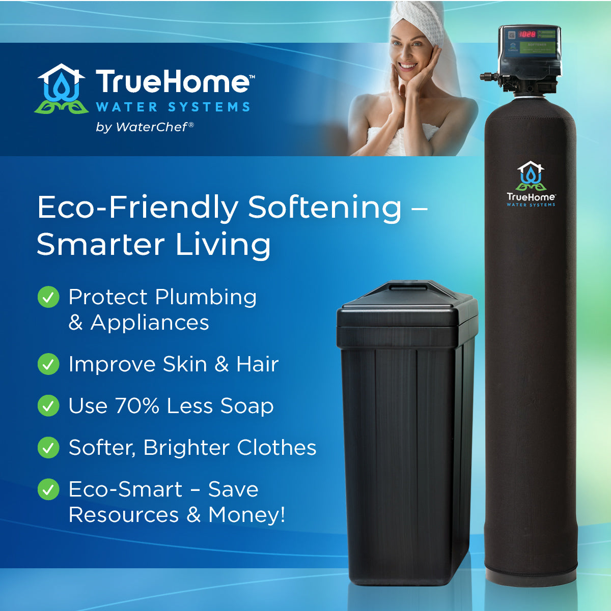 Transform your home’s water with the TrueHome™ ECO-SMART Water Softener. This advanced, eco-friendly system combines cutting-edge technology with superior efficiency to deliver soft, clean water that benefits your entire home.
